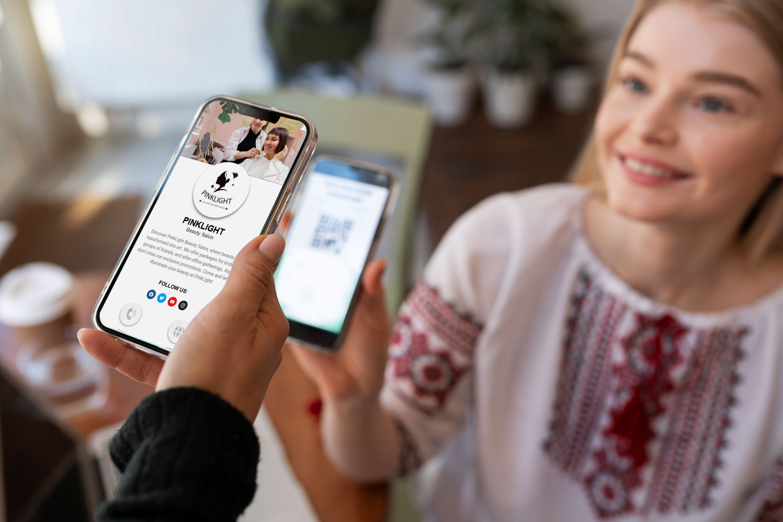 Share your card instantly via WhatsApp, email, social media, or via a QR code or link. Ideal for modern, contactless networking.